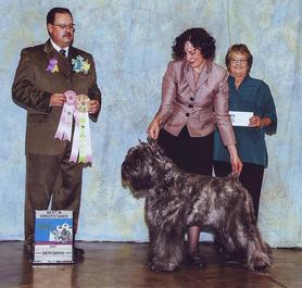 A few weeks later at the Northern California Bouvier des Flandres specialty, Garrison went Best Veteran in Sweeps and Best Veteran Dog. All of our pups were in the ribbons and Mal - La Chanson's Moonraker - was Best Opposite in Sweeps one of the days.
